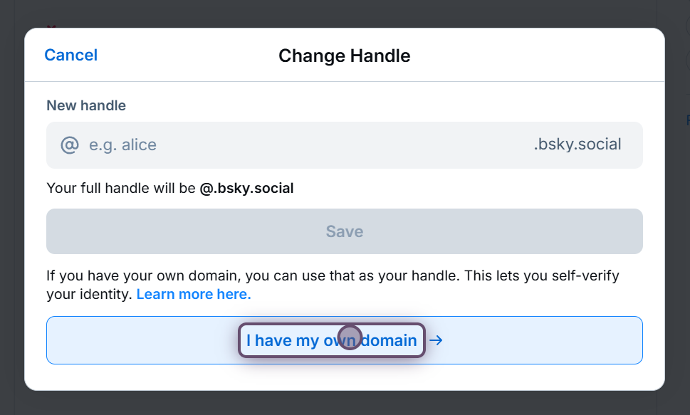 4. Click on the **I have my own domain** button.