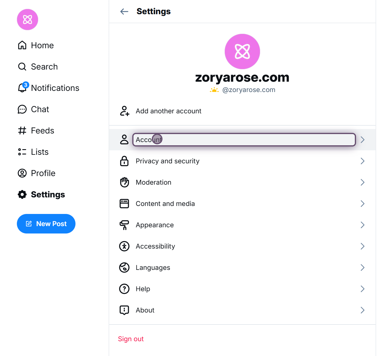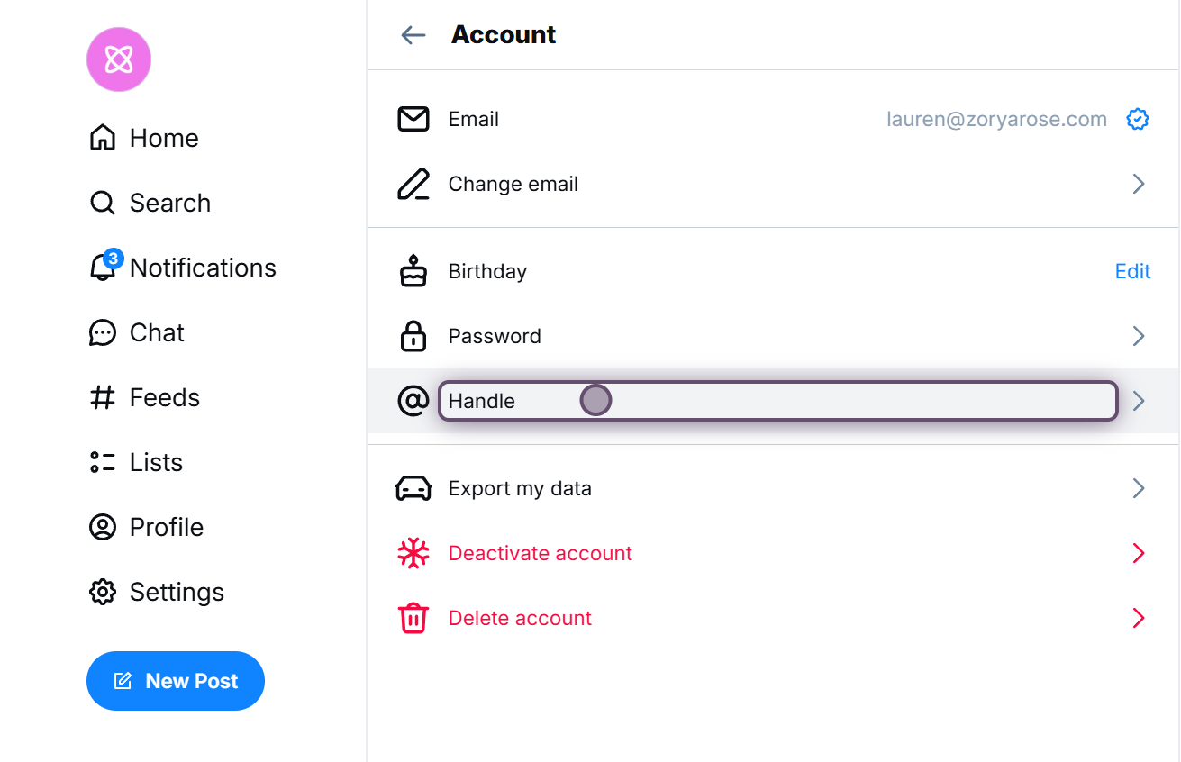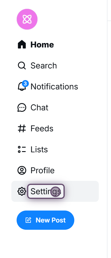 1. On the [Bluesky](https://bsky.app/) website, click **Settings** in the left sidebar.