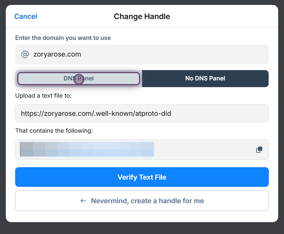 - If you don't have access to your DNS panel but you can upload files to your website, click on the **No DNS Panel** option.